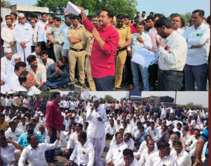 शरद जोशी विचारमंच शेतकरी संघटना व प्रहार जनशक्ती पक्षाच्या वतीने भव्य रस्ता रोको आंदोलन