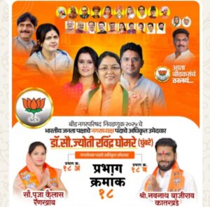 बीड : प्रभाग क्रमाक १८ मध्ये कमळ फुलणार,श्री. नवनाथ बाजीराव कातखडे व सौ. पूजा कैलास रणखांब यांच्या हाती विजय पताका निश्चित!