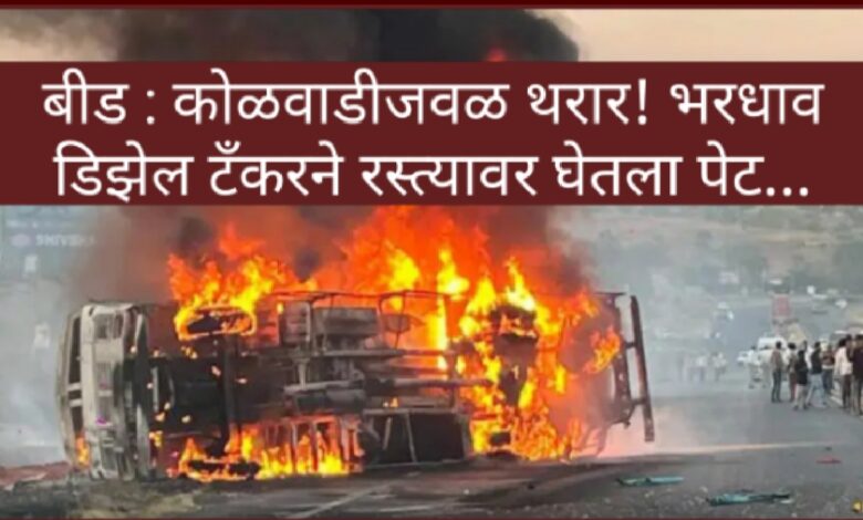 बीड : कोळवाडीजवळ थरार! भरधाव डिझेल टँकरने रस्त्यावर घेतला पेट…