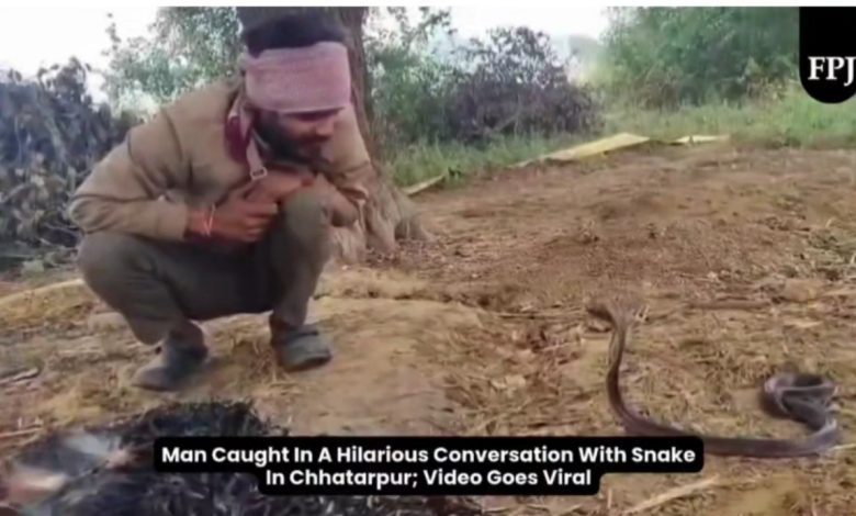 व्हिडिओत व्यक्ती बुंदेलखंडी भाषेत सापाशी मजेशीर आणि मैत्रीपूर्ण पद्धतीने बोलताना दिसतो.
