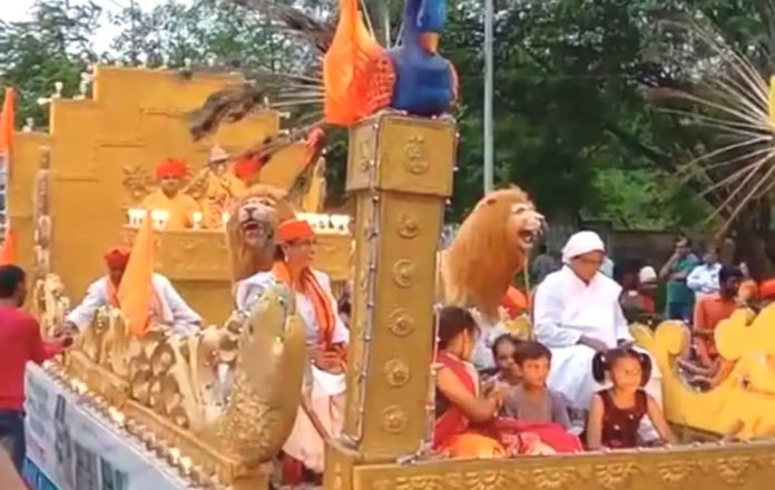नागपूर : बजरंग दल आणि विश्व हिंदू परिषदने नागपुरात आज रविवारी भव्य शोभायात्रा काढली. विश्व हिंदू परिषदेचा स्थापना Vishwa Hindu Parishad दिवस आणि श्रीकृष्ण जन्माष्टमीचे निमित्य Janmashtami साधत ही विशाल शोभायात्रा RSS Shobhayatra Nagpur काढण्यात आली. या शोभायात्रेमध्ये देखावे तयार करण्यात आले होते. यासोबतच ढोल ताशा पथक, बँड पथक, लेझीम पथक आणि भगव्या रंगाचे झेंडे सगळ्यांना आकर्षित करत होते.
