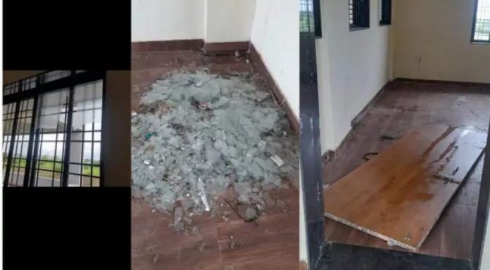 स्थानकात काचांचा खच आढळून आला आहे. समोरील गेटचे कुलूप तोडून टाकले आहे. मोठ्या प्रमाणावर तोडफोड होऊन सार्वजनिक मालमत्तेचे नुकसान झालेले असतानाही रेल्वे अधिकाऱ्यांकडून याची कसलीच फिर्याद पोलिस ठाण्यात देण्यात आली नाही.