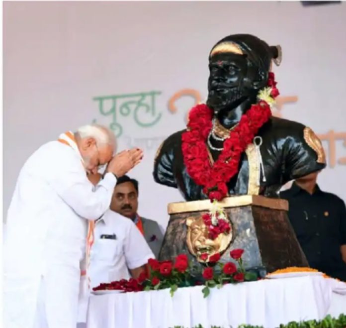 महाराष्ट्रातील पिवळे इतिहासकार हे धंदे करत असताना मोदींनी छत्रपतींचा इतिहास मस्तकी धरला. २०१४ च्या लोकसभा निवडणुकीच्या आधी नरेंद्र मोदी यांना भाजपाने पंतप्रधान पदाचा उमेदवार घोषित केले. महाराष्ट्रात प्रचाराला आलेले मोदी छत्रपतींचे आशीर्वाद घेण्यासाठी रायगडावर गेले, शिवरायांच्या समाधीसमोर नतमस्तक झाले. काशी विश्वेश्वर मंदिराच्या नूतनीकरणाच्या सोहळ्यात सहभागी झालेल्या मोदींनी छत्रपतींच्या ऐतिहासिक योगदानाला उजाळा दिला. जेव्हा औरंगजेब निर्माण होतो, तेव्हा एखादा शिवाजी त्याच्यासमोर उभा ठाकतो, त्याला आव्हान देतो या शब्दात त्यांनी नेमक्या शब्दात महाराजांचे जीवनकार्य लोकांसमोर मांडले.