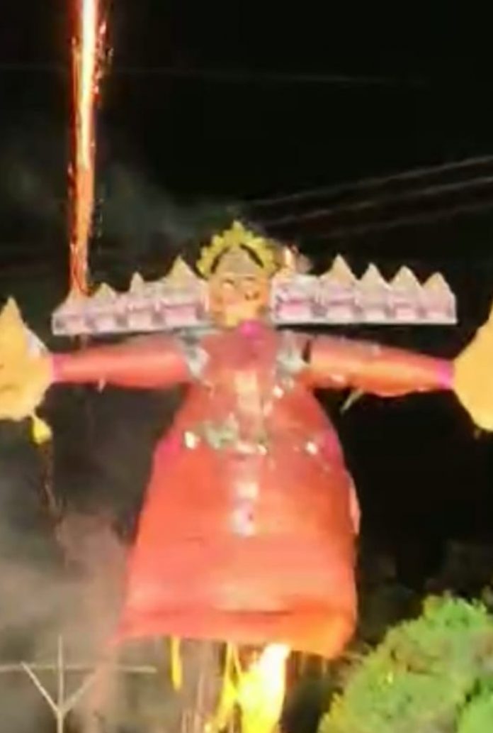 सायंकाळी तब्बल 40 फूट उंचीच्या रावणाचे दहन करण्यात आले. रावण बनवण्यासाठी 10 दिवसांचा कालावधी लागला होता. यामध्ये मंदिराचे माता सेवक, मंदिर सदस्यांनी मेहनत घेऊन उत्सवाची तयारी केली . सजवण्यासाठी 100 मीटर कपडा रावण बनवण्यासाठी प्रामुख्याने कसपण, पालापाचोळा, सरमठाचा वापर करण्यात आला आहे.