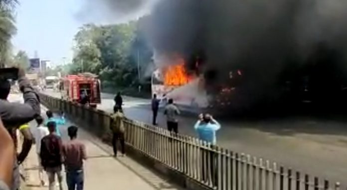 भररस्त्यात शिवशाहीला आग गाडीत ४२ प्रवासी…