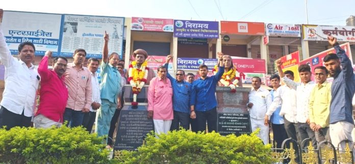 यांच्या पुण्यतिथी निमित्त प्रतिमेष पुष्पहार आर्पण करुन विनम्र अभिवादन करतांना