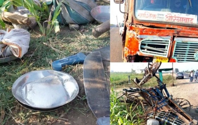 या अपघातात बाबत पोलिसांनी दिलेली माहिती अशी की, मानिकपुंज ता.नांदगाव जि. नाशिक येथील ऊस तोड कामगार गोविंद विठ्ठल गिरे, बाळू गोविंद गिरे, सोन्याबाई गोविंद गिरे व अर्जुन गोविंद गिरे असे एकाच कुटुंबातील 4 जण बैलगाडीतून औरंगाबाद पुणे महामार्गाने जात होते. त्यांची बैलगाडी ईसारवाडी फाट्याजवळील इंडियन ढाबापासून महामार्ग ओलांडत होती.