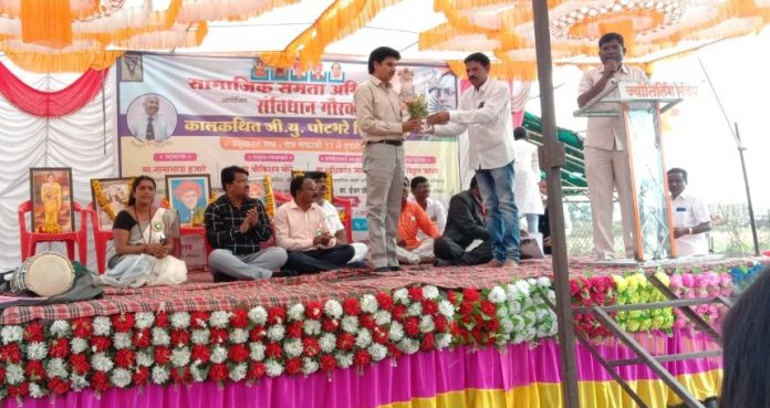सामाजिक समता अभियान आयोजित वडवणी येथे संविधान गौरव परिषद उत्साहात पार पाडली. यावेळी उद्घाटक म्हणून बीडचे उपशिक्षणाधिकारी नानाभाऊ हजारे हे उद्घाटन सत्रात बोलत होते. यावेळी कार्यक्रमाचे अध्यक्ष सामाजिक समता अभियान चे महासचिव प्रा. शशिकांत जावळे तर प्रमुख व्याख्याते म्हणून उपप्रचार्य श्रीकिशन मोरे हे होते. यावेळी प्रा.डॉ. विठ्ठल जाधव सामाजिक समता अभियान कार्याध्यक्ष यांनी कार्यक्रमाचे प्रास्ताविक व परिषदेची भुमिका मांडताना समाजात संविधान संस्कृती रुजवणे गरजेचे आहे.यासाठी सर्वांनी प्रयत्न करणे आवश्यक आहेअसे म्हटले.प्रमुख व्याख्याते श्री किशन मोरे यांनी सविस्तर असे मार्गदर्शन केले यावेळी त्यांनी संविधानातील प्रत्येक कलम आणि त्या कलमाचे महत्त्व विशद करून पटवून देण्याचा प्रयत्न केला. या सत्राचे कार्यक्रमाचे अध्यक्ष प्रा. शशिकांत जावळे सामाजिक समता अभियान चे महासचिव यांनी अध्यक्षीय समारोप करताना सामाजिक समता अभियान ची भूमिका स्पष्ट केली. त्यावेळी ते म्हणाले प्रबोधनाच्या माध्यमातून सामाजिक समता अभियान गेल्या अनेक वर्षापासून कार्यकर्ते सामाजिक समता निर्माण करण्यासाठी समतेसाठी संघर्ष करणे आवश्यक आहे. त्यासाठी सर्वांनी महापुरुषांचे विचार अंगीकारून त्या महापुरुषाचे विचार गतिमान करण्यासाठी प्रयत्न करावे, महापुरुषांच्या विचारातूनच सामाजिक समता निर्माण होते असे त्यांनी सांगितले. यावेळी मंचावर प्रमुख पाहुणे नगरसेवक भिमराव उजगरे, बांधकाम सभापती बाबासाहेब वाघमारे, अॅड. भास्कर उजगरे, सौ. शिलाताई उजगरे , प्रा.ईश्वर डोंगरदिवे , एस.पी. राठोड यांच्यासह अनेक मान्यवर उपस्थित होते.