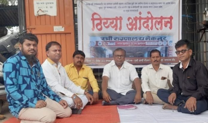 बीड तालुक्यातील नेकनुर येथील बंद केलेली महात्मा ज्योतीराव फुले जन योजना व आयुष्यमान भारत जन आरोग्य योजना(MJPJAY &MPJAY ) चुकीच्या माहितीच्या आधारे अन्यायकारक रित्या बंद करण्यात आली असून ती पुर्ववत सुरू करण्यात यावी यासाठी आंदोलनाचा ईशारा सामाजिक कार्यकर्ते डाॅ.गणेश ढवळे लिंबागणेशकर यांच्या नेतृत्वाखाली जिल्हारूग्णालय बीड येथे ठीय्या आंदोलन सुरू करण्यात आले असून आंदोलनात सहभागी असुन शेख युनुस च-हाटकर, बलभीम उबाळे सय्यद आबेद बीडकर,शेख मुबीन,शेख मुश्ताक आणि मुक्त पत्रकार संतोष ढाकणे आदि सहभागी झाले होते.मागण्यांचे निवेदन डाॅ.सुरेश साबळं जिल्हाशल्यचिकित्सक जिल्हारूग्णालय बीड यांना देण्यात आले.