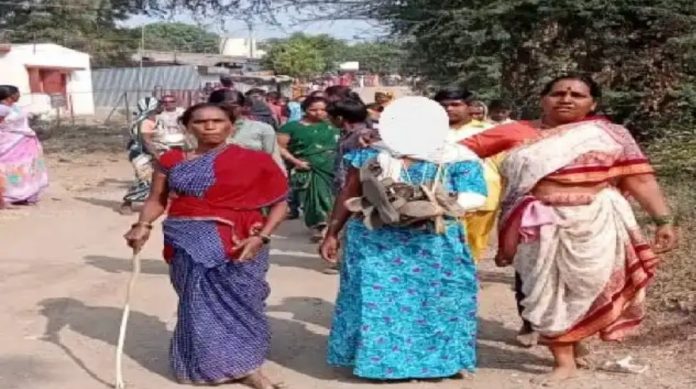 विधवा महिलेला काळे फासून गावात काढली धिंड