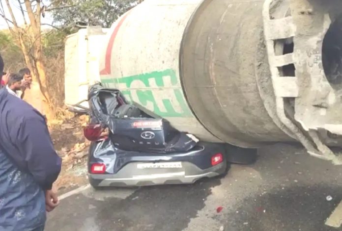 सिमेंट-काँक्रीट मिक्सर ट्रक उलटला कारमधल्या आई आणि मुलीचा जागीच मृत्यू