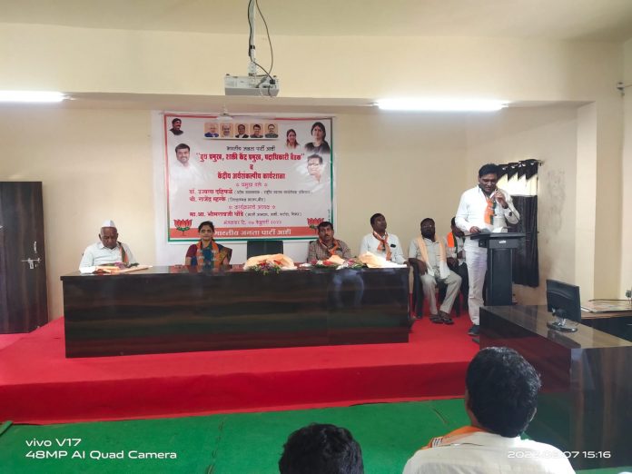 आष्टी : भारतीय जनता पार्टी आष्टी बुथ प्रमुख, शक्ती केंद्र प्रमुख,पदाधिकारी बैठक भाजपाचे नेते माजी आमदार भीमराव धोंडे यांच्या उपस्थितीत मंगळवारी आष्टी येथील भगवान महाविद्यालयात संपन्न झाली .यावेळी या बैठकीला भाजपा नेते मा.आ.भीमरावजी धोंडे यांनी मार्गदर्शन केले. डॉ. उज्वला दहिफळे ( प्रदेश समन्वयक, राष्ट्रीय स्वास्थ स्वयंसेवक अभियान )यांनी केंद्रीय अर्थसंकल्पीय व मोदीजी यांच्या योजना यांच्या विषयी मार्गदर्शन केले.प्रा. देविदास नागरगोजे सर ( भाजपा बीड सरचिटणीस ) संघटना आणि कार्यकर्ते सरल ॲप, नमो ॲप, यांच्या वर मार्गदर्शन केले यावेळी उपस्थित डॉ. उज्वला दहिफळे ( प्रदेश समन्वयक, राष्ट्रीय स्वास्थ स्वयंसेवक अभियान ), प्रा. देविदास नागरगोजे सर ( भाजपा बीड सरचिटणीस ), भाजपा आष्टी तालुका अध्यक्ष ॲड.साहेबराव म्हस्के, भाजपा जेष्ठ नेते बबन आण्णा झांबरे, भाजपा बीड सचिव शंकर देशमुख, आरपीआय आष्टी तालुकाध्यक्ष अशोक साळवे, सरपंच सावता ससाणे, सरपंच संजय नालकोल, नगरसेवक ज्ञानदेव राऊत, नगरसेवक आस्लम बेग, नगरसेवक दादासाहेब गर्जे, रघुनाथ शिंदे, बबनराव औटे, बाबुराव कदम,दादासाहेब झांजे, चंद्रशेखर साके, सतीश झगडे,संभाजी जगताप,तात्या कदम,व इतर कार्यकर्ते ,बुथ प्रमुख, शक्ती केंद्र प्रमुख, नगरसेवक, सरपंच, उपसरपंच, ग्रा.पं. सदस्य, सर्व पदाधिकारी, कार्यकर्ते व मान्यवर उपस्थित होते