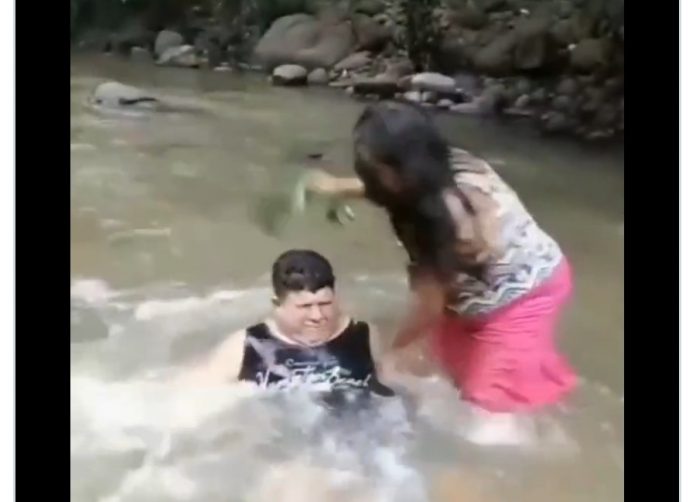 व्यसन अशा पद्धतीने सोडवलं जात असेल तर बापा जन्मी व्यसन केलेलं नको असा विचार अनेकांच्या मनात येईल. ज्यांना आपल्या नवऱ्याचं व्यसन उतरावयचे असेल तर त्यांनी हा व्हिडिओ एकदा पाहून घ्यावा. या व्हिडिओमध्ये एक महिला आणि एक माणूस दिसत आहे. ते दोघेही नवरा-बायको असल्याचं सांगण्यात येत असून नवऱ्याला व्यसन असल्याचं सांगण्यात येत आहे. आपल्या नवऱ्याला असलेलं व्यसन सोडविण्यासाठी या व्हिडिओमधील महिलेनं एक जबरदस्त उपाय शोधून काढला आहे. नवऱ्याचं व्यसन सोडविण्यासाठी पत्नीने त्याला वाहत्या पाण्यात बसवलं. तिने हातात झाडाचे पानं घेतली आहेत.