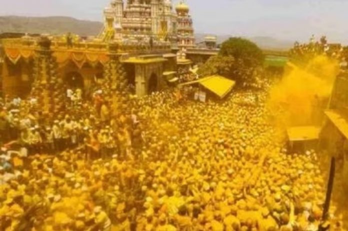 येळकोट येळकोटच्या गजराने परिसर दुमदुमला, भाविकांनी केली भंडाऱ्याची उधळण